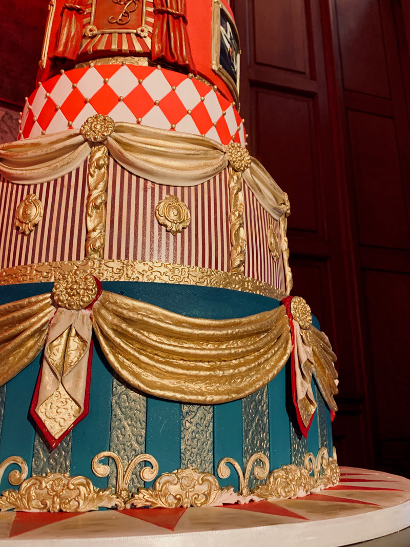 The circus cake for the pre- wedding party was the first one we designed. We met with the planner - Melanie from Cranberry Blue - at the client’s home 8 months prior to the wedding and brainstormed for hours.