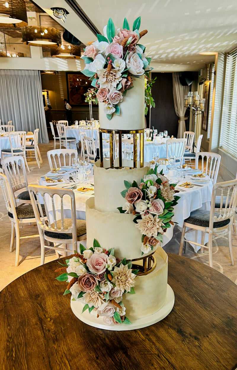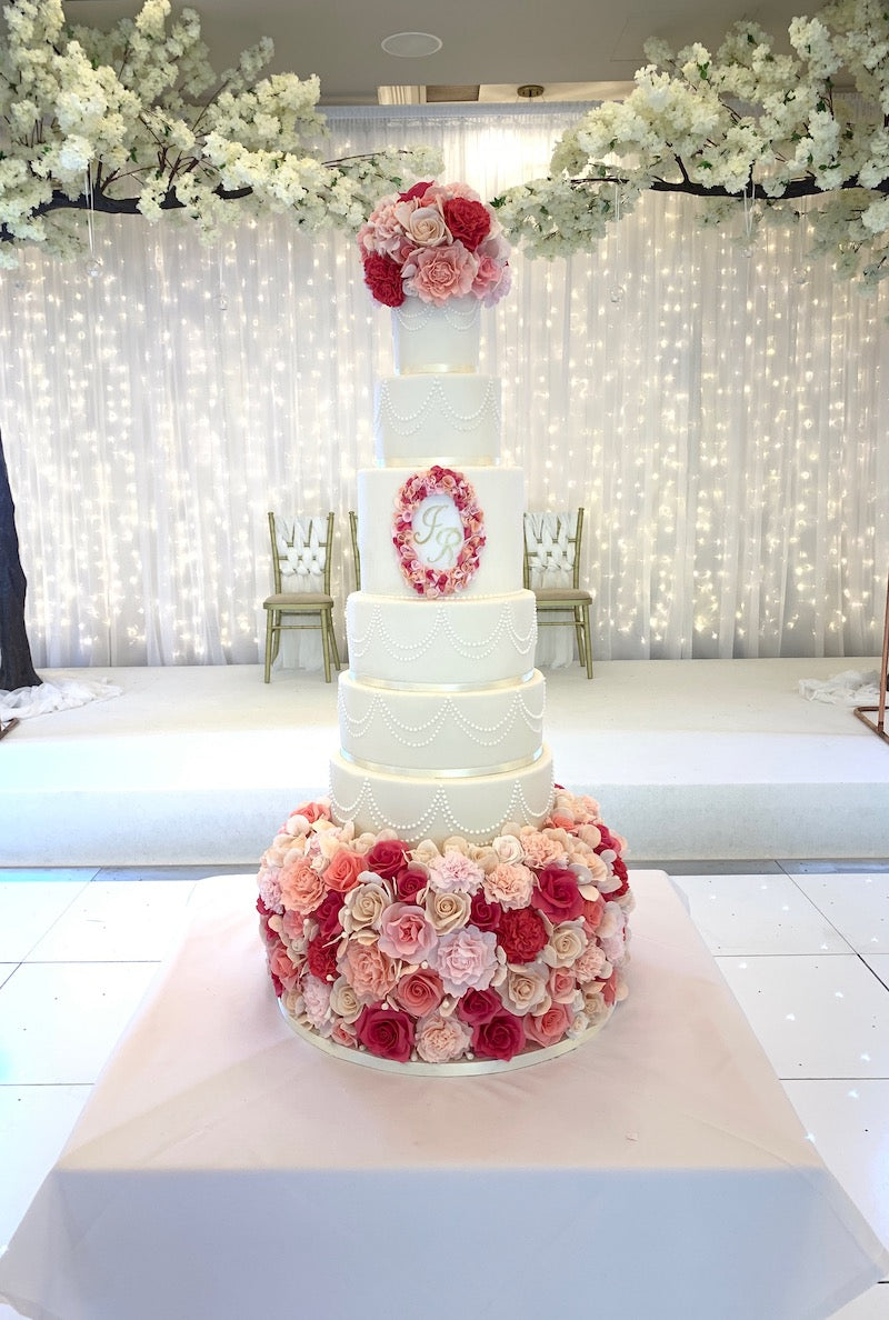 As an Essex cake maker we do get asked to make some quite elaborate wedding cakes! There is no secret that an Essex moto is ‘GO BIG OR GO HOME’ and it is actually quite rare that we deliver a small cake to an essex wedding or event. Thats fine by us! The bigger the better. Event if you don’t have hundreds of guests, don’t worry, we can add a couple of fake tiers in. Nobody will know the difference! You will then still get a fabulous presentation but you won’t have cake for 500 people.