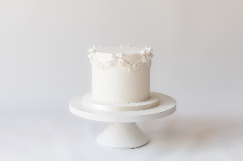 - Maximise on Cake portions. you’ll be surprised at how many portions you can get from a deep single tier 7 inch cake. Our single tier Wedding Cakes - The Bow for example, you will get 40 portions just from this one tier. I know it doesn’t look like it but honestly, you will. Your caterers will cut horizontally first (so, essentially getting two cakes and then, each of these cakes will but cut - in a grid - NOT A PIZZA!