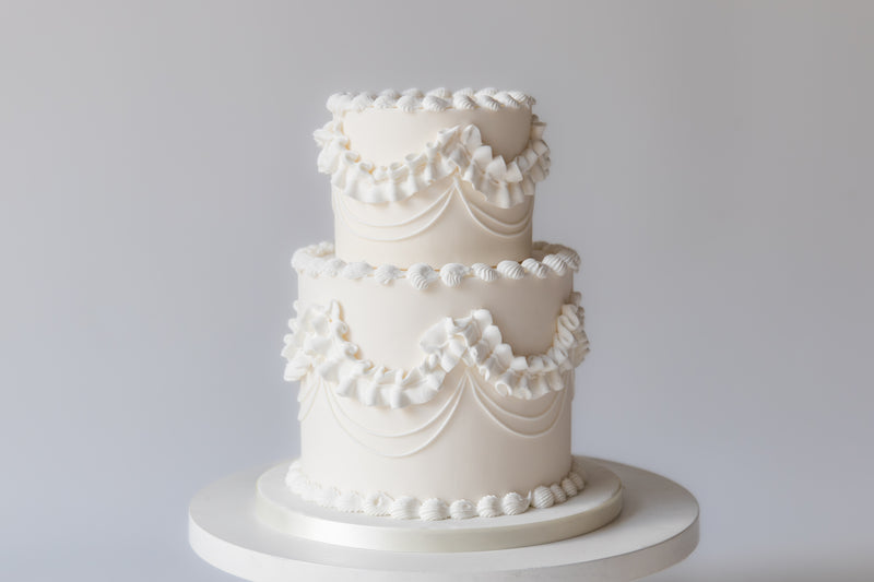 Vintage piped cakes are sometimes called ‘overpiped cakes’ or Lambeth cakes. Overpiped is self explanatory but not many people know where the term Lambeth comes from. Basically, a man called Joseph Lambeth produced a book on the technique in the mid 20th century and it has stuck since then. The book was called The Lambeth Method of Cake Decoration & Practical Pastries. It came out in 1934 so, this style has been en vogue for nearly 100 years. Probably the best exactly of the Lambeth Cake is the first image here which was delivered to The Belvedere at Holland Park last week