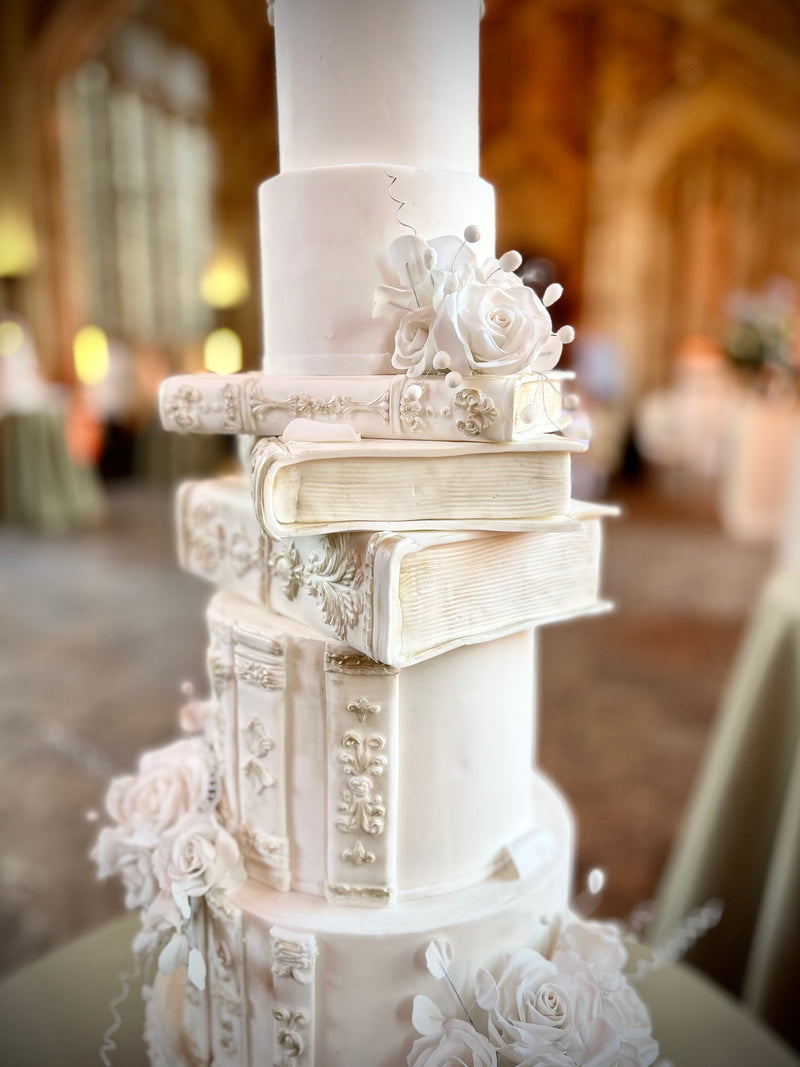 Pictured here is our favourite wedding cake we have delivered to the Library over the last couple of years. Obvious designs nods to academia but also keep a beautiful wedding charm
