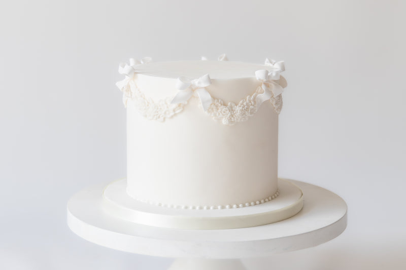 En trend for wedding cakes in 2026 is definitely white. Clean and crisp and a simple but beautiful design.