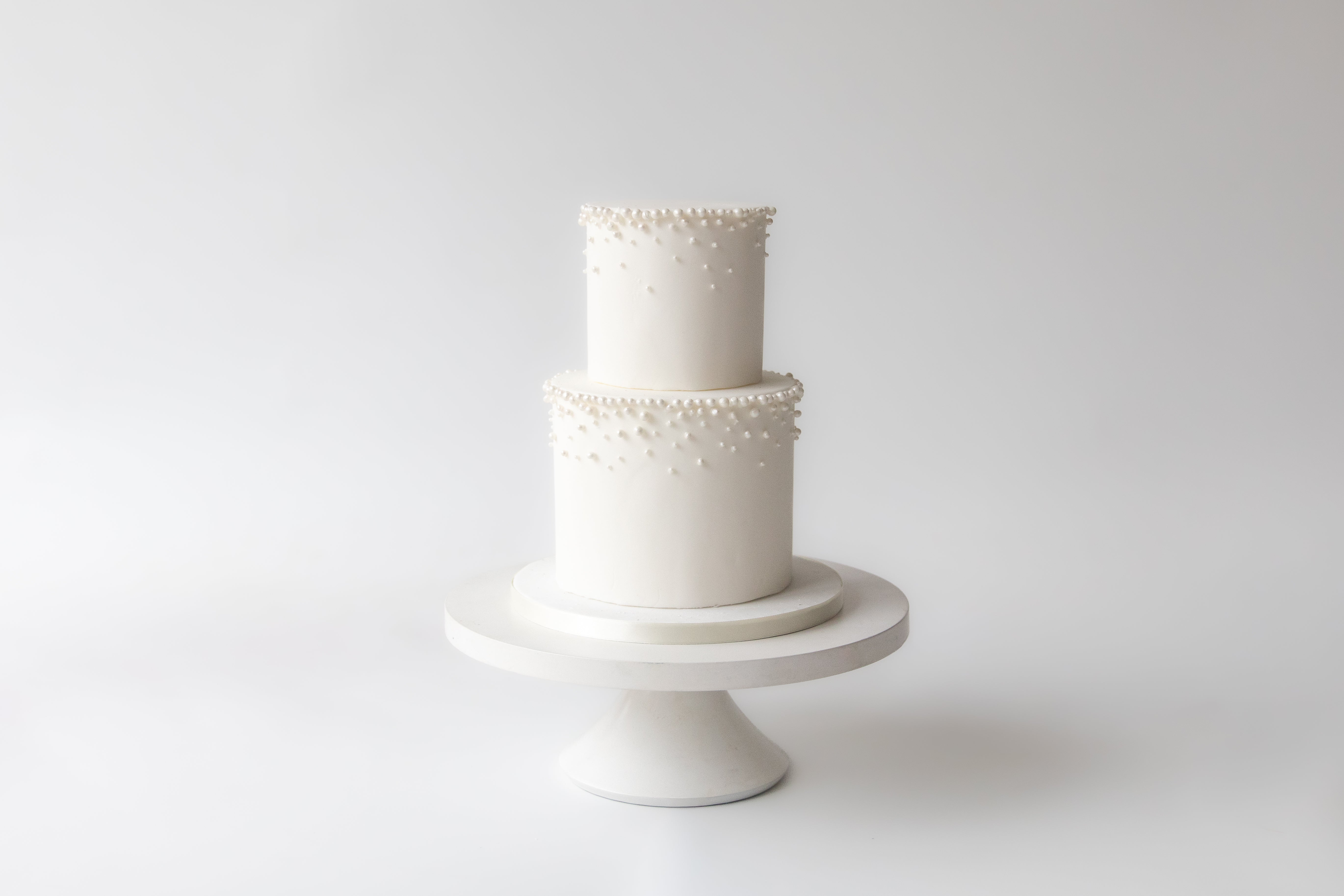 Delicate and dainty.  Adorned with edible pearls for a soft and sophisticated centrepiece.