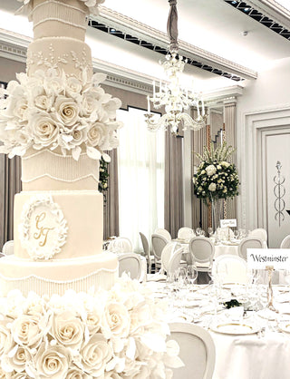 Her creations have adorned weddings at premier venues including Claridge’s, The Ritz, Hampton Court Palace and Leeds Castle, and commissioned by a discerning clientele who expect the best.